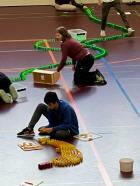 Der DominoDay kann überall in Seminarräumen, Turnhallen, je nach Wetter auch im Aussenbereich durchgeführt werden. Dazu benötigen wir lediglich 1 Tisch pro Team den Rest bringen wir für Sie.