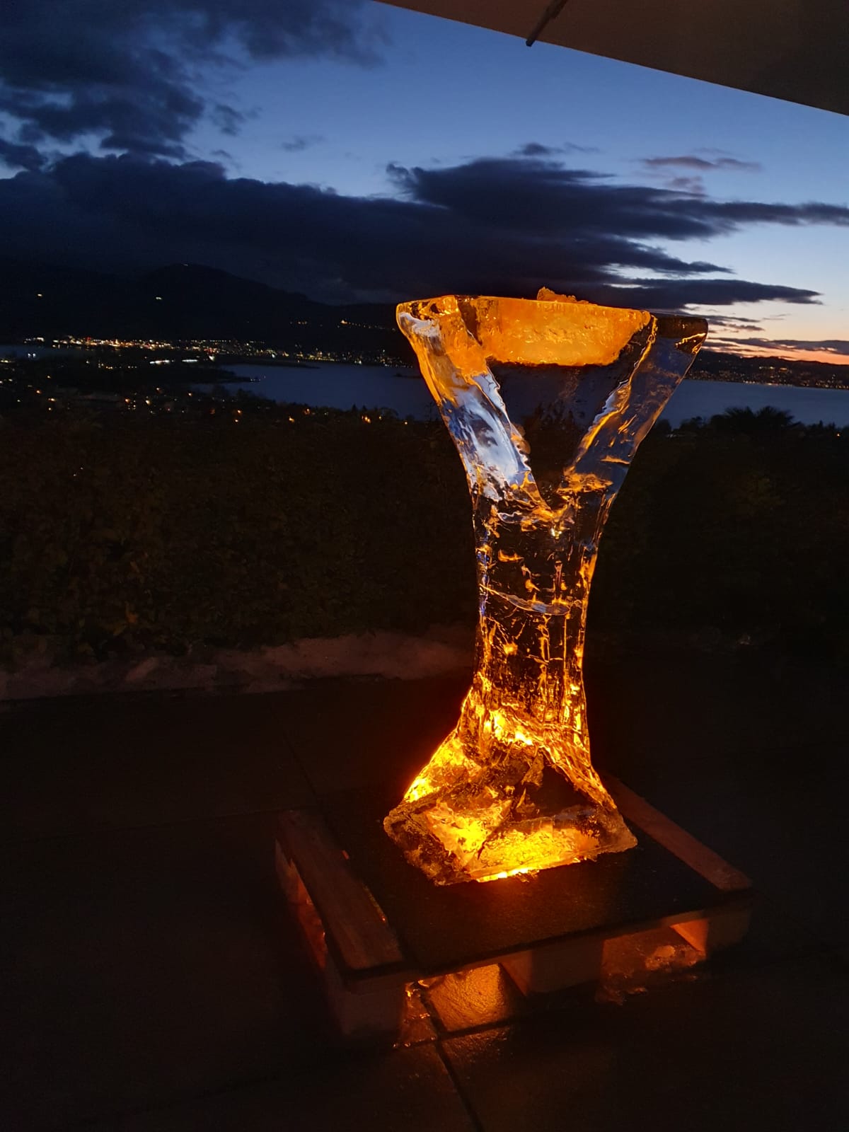 Am Ende steht sie da: Eure selbstgemachte Eisskulptur! Vielleicht ein majestätischer Adler, ein kunstvoller Firmenname oder... ein etwas schief geratenes Herz. Aber hey, am wichtigsten ist der Spaß, oder?